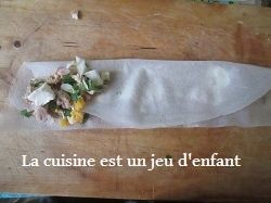 Mettez de la farce thon/coriandre/œufs et quelques dés de vache qui rit