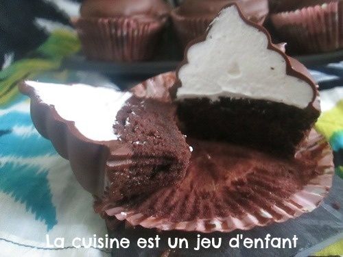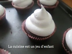 Cela faisais un moment que ma mère avait envie de gouter aux "hit hat cupcakes" de martha stewart (j'ai aussi vu le nom "hi hat cupcakes" mais je préfère le premier ^^), voila qui est fait et ils était délicieux , un peu "bourratif" puisqu'il y a un muffins décoré de meringue italienne recouverte de chocolat mais c'est un délice. La recette vient du blog "La cuisine de malou"